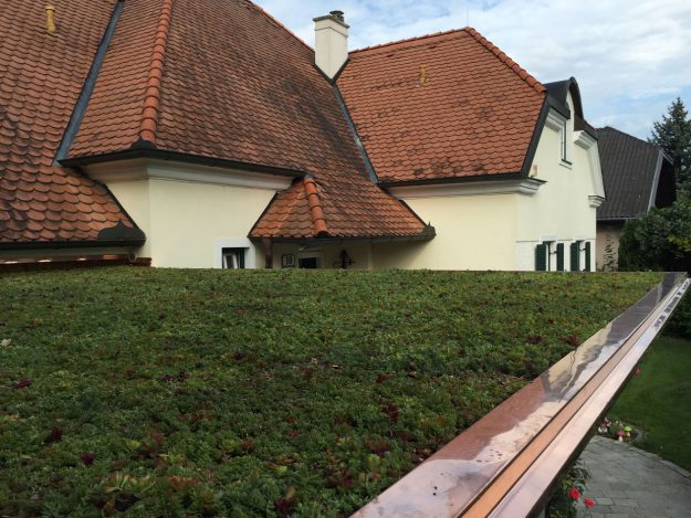 Hierfür verwenden wir eine 1,5 mm starke, wurzelsichere, EPDM Kautschukplane. Langzeitbewährt und mit einer Lebenserwartung von mehr als 50 Jahren.